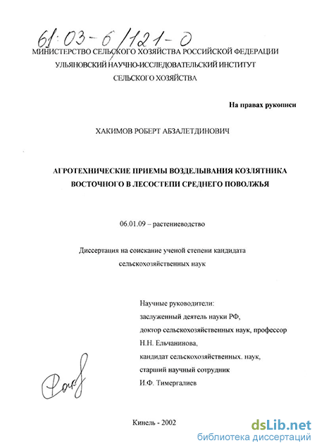 Хакимов Роберт Абзалетдинович. Агротехнические приемы возделывания козлятника восточного в лесостепи Среднего Поволжья : диссертация ... кандидата сельскохозяйственных наук : 06.01.09.- Кинель, 2002.- 187 с.: ил. РГБ ОД, 61 03-6/121-0