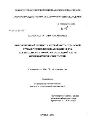Цель работы - уточнение и совершенствование элементов технологии возделывания суданской травы в чистых и смешанных посевах на серых лесных почвах в условиях юго-западной части Нечерноземной зоны РФ.