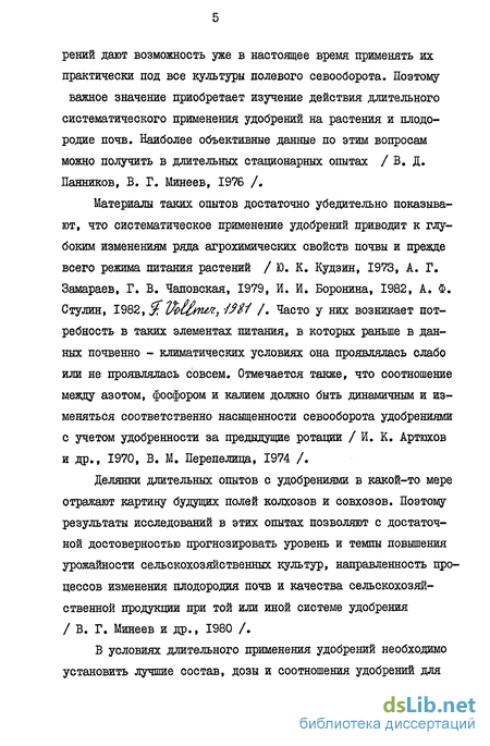 Материалы таких опытов достаточно убедительно показывают, что систематическое применение удобрений приводит к глубоким изменениям ряда агрохимических свойств почвы и прежде всего режима питания растений / Ю. К. Кудзин, 1973, А. Г. Замараев, Г. В. Чаповская, 1979, И. И. Воронина, 1982, А. Ф. Стулин, 1982, Jf %ф -fSSi /. Часто у них возникает потребность в таких элементах питания, в которых раньше в данных почвенно - климатических условиях она проявлялась слабо или не проявлялась совсем. Отмечается также, что соотношение между азотом, фосфором и калием должно быть динамичным и изменяться соответственно насыщенности севооборота удобрениями с учетом удобренности за предыдущие ротации / И. К. Артюхов и др., 1970, В. М. Перепелица, 1974 /.