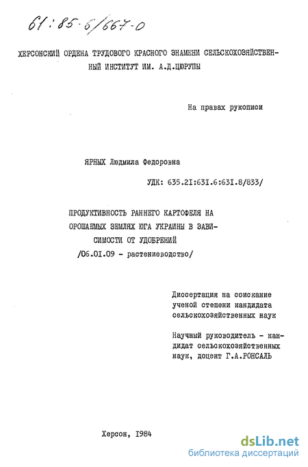 Определенная работа по изучению вопросов повышения урожая картофеля проведена и на юге Украины /О.й.Онищенко, 1950, 1969; Т.Б.Куваиовой, 195ь; О.Г.Абрашиной, 1965; й.С.Бойко, 1967, 1971; А.А.Ахтирченко, 1969; й.А.Лукьяненко, 1972, 1976; М.С.Дозович,
