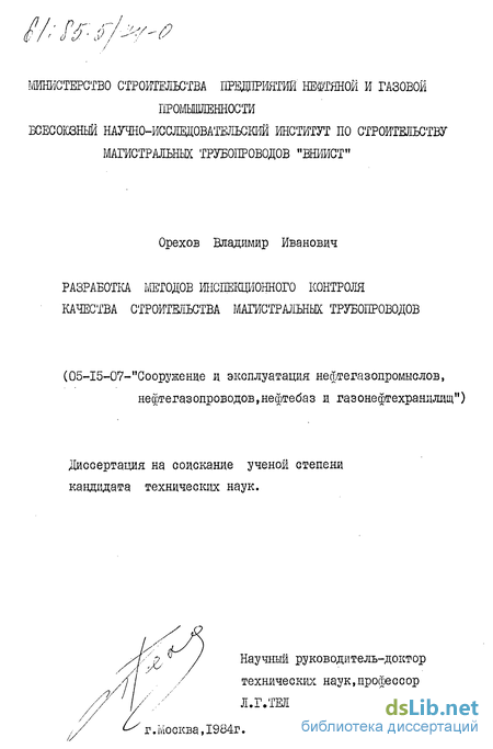 Широкий круг задач,стоящих перед инспекцией по качеству, сложность их решения, а также высокий уровень ответственности за реальные возможности и результаты внедрения практических мероприятий по улучшению качества обуславливает необходимость разработки научно-обоснованной методологии инспекционного контроля качества строительства магистральных трубопроводов.