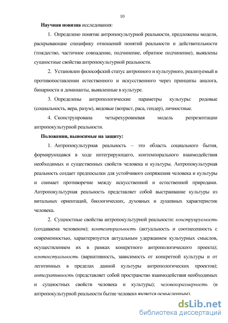 Научно-практическая значимость исследования Материалы исследования содержат теоретические положения, указывающие на границы применения антропных характеристик при моделировании культурной реальности, способные послужить основанием для разработки целостного подхода к проектированию культуры, направленного на формирование комфортной среды для жизнедеятельности человека.