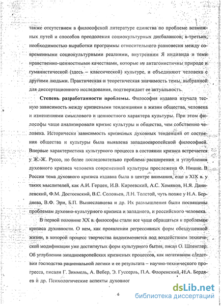фии в разработке концепции культурного кризиса и кризиса духовности человека,