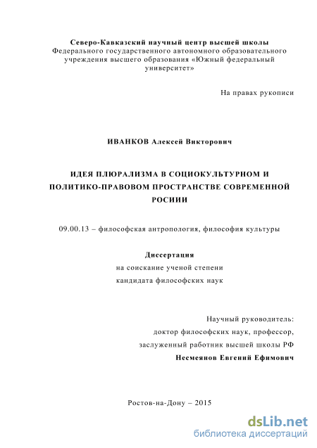 - Проблемы и перспективы реализации идеи плюрализма в социокультурном и политико-правовом пространстве России