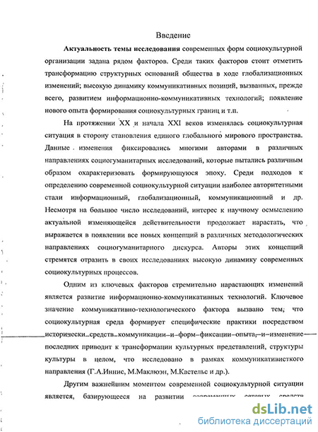 Актуальность темы исследования современных форм социокультурной организации задана рядом факторов. Среди таких факторов стоит отметить трансформацию структурных оснований общества в ходе глобализационных изменений; высокую динамику коммуникативных позиций, вызванных, прежде всего, развитием информационно-коммуникативных технологий; появление нового опыта формирования социокультурных границ и т.п.