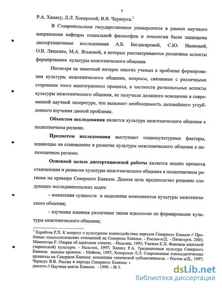 Степень научной разработанности проблемы. Культура межэтнического общения является предметом междисциплинарного анализа, в котором с помощью теоретико-методологических подходов гуманитарных наук исследуются различные аспекты этого социокультурного феномена. Исследование данной темы потребовало обращения к философским, культурологическим, социологическим, этнологическим, политологическим и историческим работам, авторы которых по-разному трактовали культуру межэтнического общения.