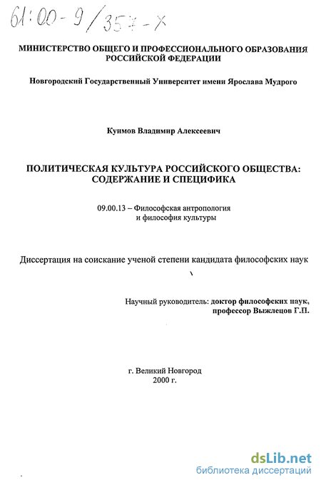 Учет специфики политической культуры России в современном государственном строительстве является одним из средств преодоления социально-экономического кризис в стране.