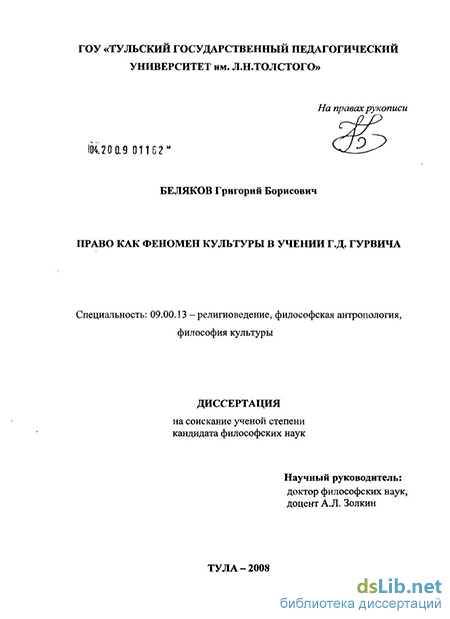 Степень разработанности проблемы. В отечественной философской и юридической литературе представлено крайне незначительное количество научных исследований, посвященных анализу идей Г. Д. Гурвича. Единственной монографической работой о творчестве Г. Д. Гурвича на