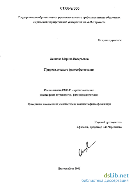 Цель диссертации - исследование природы детского философствования.