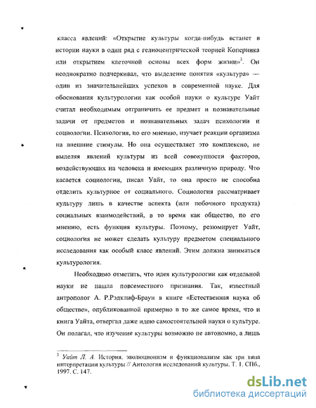 Уайт Л. А. История, эволюционизм и функционализм как три.типа интерпретации культуры // Антология исследований культуры. Т. 1. СПб., 1997. С. 147.