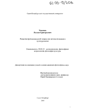 В полной мере это можно отнести и к культурологии, науке о полном и комплексном исследовании человека. Но культурология наука молодая и как для любой формирующейся дисциплины, для неё фундаментально важно формирование собственной методологической базы, выработка адекватных сложности предмета исследования подходов, апробация эффективных методов исследования. И рассматривать функционализм следует с этой точки зрения — необходимо выявить особенности функционального исследования именно для культурологии, определить его возможности и границы, особенности и специфику, определить место в системе культурологических методов.