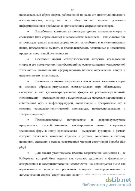 Е.Р. Доддса, Г.В. Драча, Г.Е. Жураковского, А.И. Зайцева, В. Йегера, Ф.Ф. Зеленского, Ф. Кессиди, Л. Куна, В. Оливовой, Ф. Поланда, К. Посьелло, Е.Я. Режабека, Л. Рожанского, Н.В. Рекутиной, И.Е. Сурикова, А.А. Тахо-Годи, К. Хюбнера, Ю.В. Шанина, О. Шпенглера, Л.В. Щелкиной, М. Элиаде, Н. Элиаса. Значительное число исследований, в которых анализируется история, социально-философские и культурологические проблемы современного олимпизма и олимпийского движения, представлено работами российских и зарубежных авторов: А.Г. Егорова, СИ. Курило, А.В. Кыласова, М.Я. Сарафа, В.И. Столярова, А.Б. Суника, Н.И. Пономарева, С. Diem, Krawczic, Н. Lenk, P. Mcintosh, P. Петрова и других. О спорте как формализированной состязательности, имеющей легитимный статус, способствующий не только увеличению физиологических показателей тела, но и развивающий личность, пишут такие ученые, как В.М. Выдрин, И.В. Грошевихин, Л.И. Лубышева, Г.Г. Наталов, В.А. Пономарчук и другие. Исследованию спорта как социально-зрелищной сферы, как разновидности шоу-бизнеса, спортивной аудитории и спортивного фанатства посвящены работы B.C. Козловой, А.А. Журавкова, Д.Ш. Богдановой.