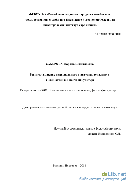 Соотношение национального и интернационального в современной российской науке