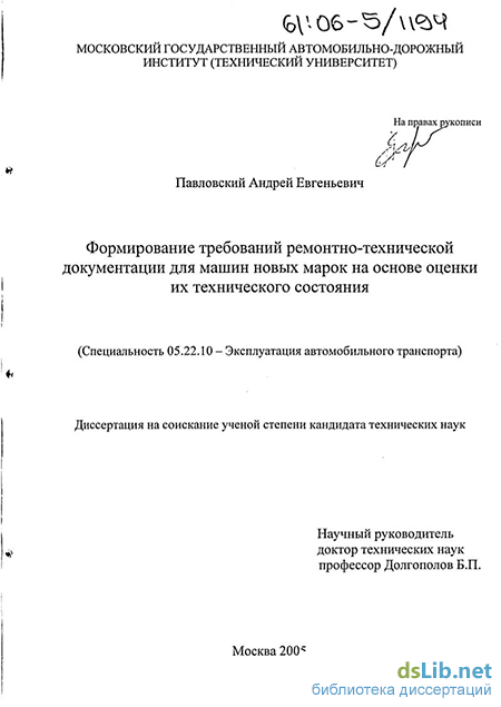 Апробация работы. Диссертационная работа заслушивалась и обсуждалась на заседании научно-технического семинара кафедры Производства и ремонта автомобилей и дорожных машин МАДИ (ГТУ) Результаты исследования докладывались на 59-й (2001 г.), 60-й (2002г.), 61-й (2003 г.), 62-й(2004г.) научно-исследовательских конференциях МАДИ (ГТУ); доклад и обсуждение на 101 АРЗ МО.