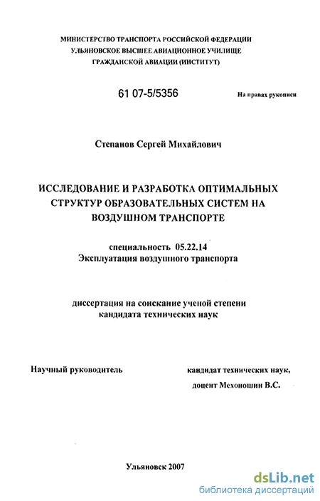 Практическая значимость работы. За время работы над диссертацией автор принял участие в научно- исследовательской работе, проводимой в Ульяновском высшем авиационном училище гражданской авиации (УВАУ ГА (И)), по тематике, связанной с разработкой и оптимизацией процесса учебно-летной подготовки курсантов специализации 240701 «Летная эксплуатация гражданских ВС» системы менеджмента качества УВАУ ГА (И)