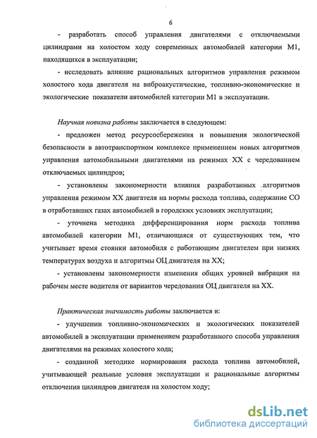 - предложен метод ресурсосбережения и повышения экологической безопасности в автотранспортном комплексе применением новых алгоритмов управления автомобильными двигателями на режимах XX с чередованием отключаемых цилиндров;
