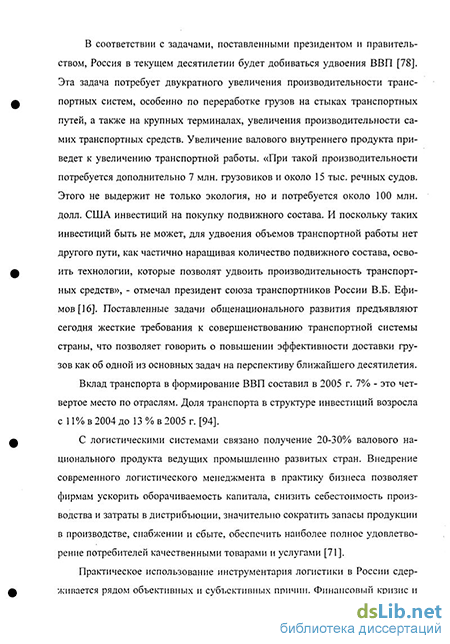 В соответствии с задачами, поставленными президентом и правительством, Россия в текущем десятилетии будет добиваться удвоения ВВП [78]. Эта задача потребует двукратного увеличения производительности транспортных систем, особенно по переработке грузов на стыках транспортных путей, а также на крупных терминалах, увеличения производительности самих транспортных средств. Увеличение валового внутреннего продукта приведет к увеличению транспортной работы. «При такой производительности потребуется дополнительно 7 млн. грузовиков и около 15 тыс. речных судов. Этого не выдержит не только экология, но и потребуется около 100 млн. долл. США инвестиций на покупку подвижного состава. И поскольку таких инвестиций быть не может, для удвоения объемов транспортной работы нет другого пути, как частично наращивая количество подвижного состава, освоить технологии, которые позволят удвоить производительность транспортных средств», - отмечал президент союза транспортников России В.Б. Ефимов [16]. Поставленные задачи общенационального развития предъявляют сегодня жесткие требования к совершенствованию транспортной системы страны, что позволяет говорить о повышении эффективности доставки грузов как об одной из основных задач на перспективу ближайшего десятилетия.