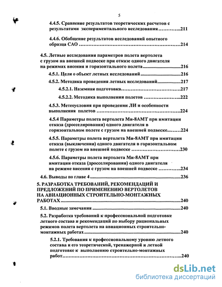 5.2. Разработка требований к профессиональной подготовке летного состава и рекомендаций по выбору рациональных режимов полета вертолета на авиационных строительно-монтажных работах 240