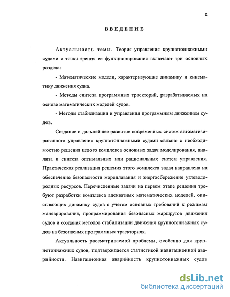 В работе выделен вклад ведущих ученых, трудами которых создавались адекватные математические модели управляемого движения судов: A.M. Басина, С.Н. Благовещенского, Я.И. Войткунского, А.Д. Гофмана, В.И. Зайкова, Р.Я. Першица, Г.В. Соболева. Отмечена роль созда телей современной теории систем: А.Н. Тихонова, Р. Калмана и др. в решении проблемы идентификации систем и фильтрации навигационной информации. Подчеркнуто значение работ Н.Н. Баутина, Е.А. Леонтови-ча, Р.А. Нелепина, А.А. Первозванского, Ю.В. Ракитского, В.А. Якубовича и других исследователей в решении задач моделирования на основе общих принципов создания и преобразования математических моделей теории управления. Представлен обзор литературы, посвященной исследуемой теме. Сформулированы цели и задачи исследования, приведен краткий обзор содержания диссертации по разделам и основные полученные результаты.