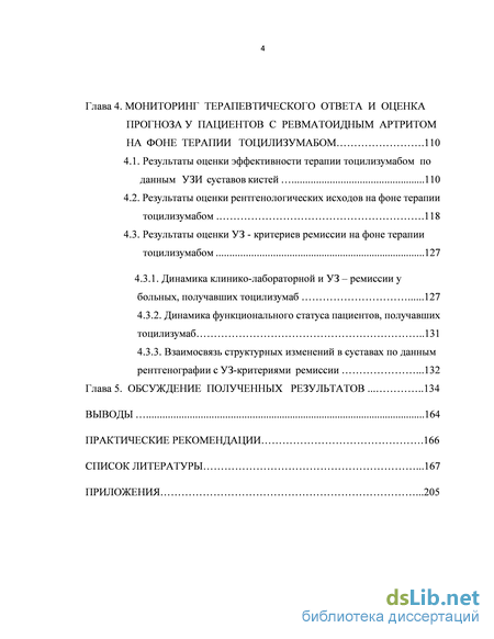 Глава 4. Мониторинг терапевтического ответа и оценка прогноза у пациентов с ревматоидным артритом на фоне терапии тоцилизумабом .110
