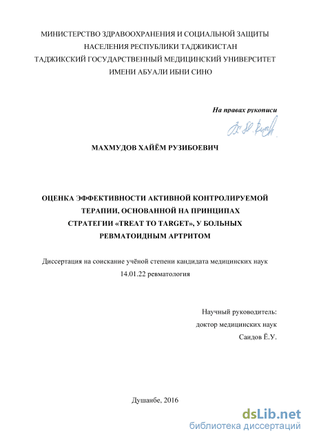 Внедрение в практику. Результаты работы внедрены в практику обследования и лечения больных ревматологического отделения ГКБ №5 г. Душанбе, а также в учебную программу кафедры пропедевтики внутренних болезней Таджикского государственного медицинского университета (ТГМУ) им. Абуали ибни Сино.