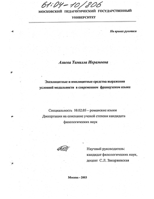 Практическая ценность этого исследования обусловлена возможностью применения ее основных положений и выводов в курсах теоретической и практической грамматики французского языка, а также в спецкурсах, посвященных проблеме модальности.