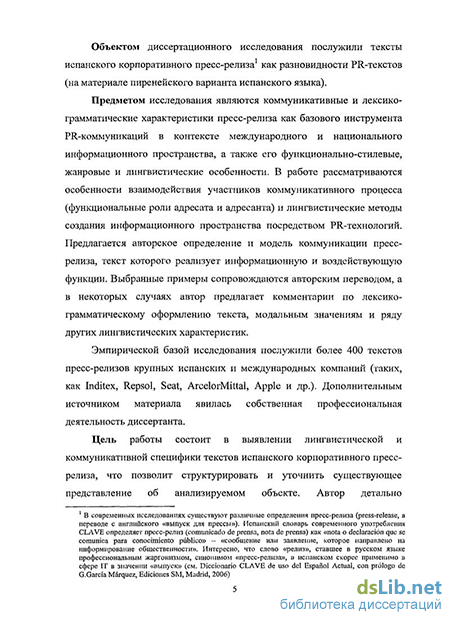 Объектом диссертационного исследования послужили тексты испанского корпоративного пресс-релиза как разновидности PR-