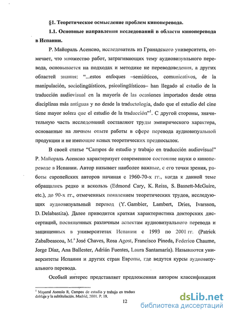 1.1. Основные направления исследований в области киноперевода в Испании 12