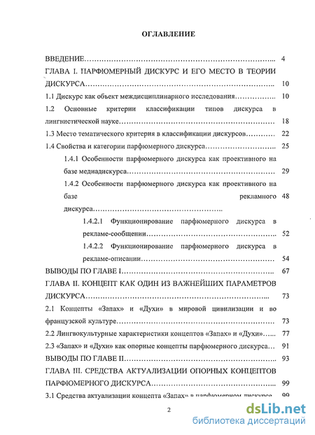 Первая глава посвящена проблемам дискурса как одного из ключевых понятий современной лингвистики, его определения и способов его классификации. В ней представлена характеристика парфюмерного дискурса и проведен анализ его функционирования в медиадискурсе (в жанре «информационная статья») и в рекламном дискурсе (на примере рекламы-сообщения и рекламы-описания).