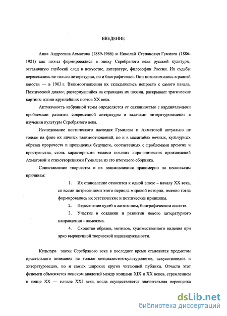 Глава I. А.А.Ахматова и Н.С.Гумилев. Литературно- исторические аспекты творчества 8-34