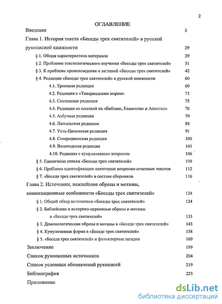 Структура и объем работы: В соответствии с поставленными задачами в диссертации выделены введение, две главы, каждая из которых делится на параграфы, и заключение. Глава 1 посвящена изучению рукописной традиции «Беседы…»; Глава 2 — вопросам поэтики, источников и интерпретации памятника. Работа включает также Список рукописных источников, Список условных обозначений рукописей и Библиографию, насчитывающую 219 названий. В конце работы помещено Приложение, представляющее ключевые редакции «Беседы…», засвидетельствовавшие разные этапы развития ее текста. Общий объем диссертации — 247 страниц.