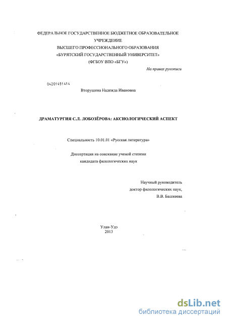 Объект исследования: проблема ценностей в современной отечественной драматургии на примере творчества С.Л. Лобозёрова.