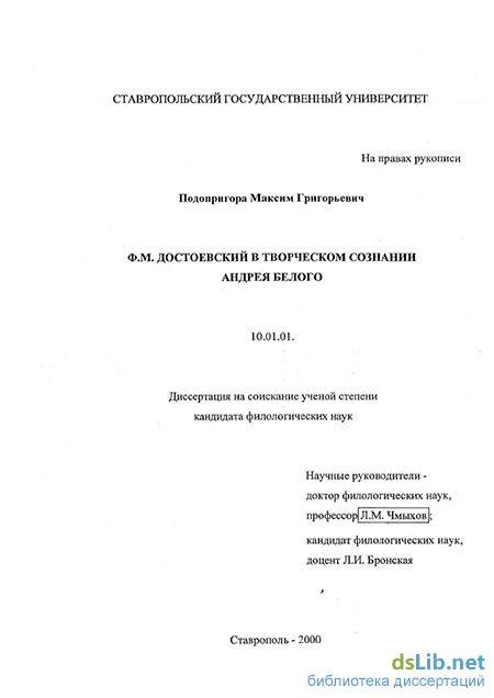 - Ф.М. Достоевский в творческом сознании Андрея Белого