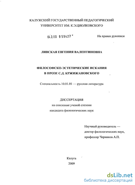 Цель диссертационного исследования — изучить важнейшие произведения С.Д. Кржижановского в аспекте философско-эстетических исканий писателя, исследовать выстраиваемую на их основе концепцию художественного мира автора.