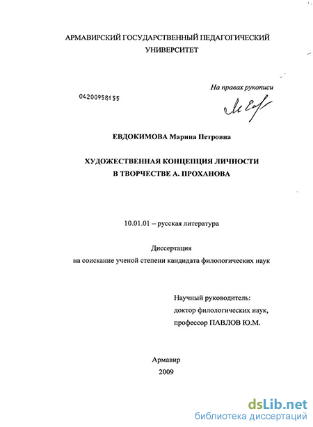 Обращение не только к творчеству одного писателя, но и к другим представителям современной прозы способствует более полному анализу концепции личности в прозе А. Проханова, выявлению динамики эволюции творчества писателя в рамках историко-литературного процесса и позволяет увидеть и оценить место писателя в контексте идейно-эстетических исканий русской литературы второй половины XX века -начала XXI столетия.