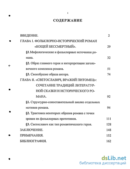 Структура работы. Исследование состоит из «Введения», двух глав: «Фольклорно-исторический роман «Кощей Бессмертный» и «Светославич, вражий питомец»: сочетание традиций литературной сказки и исторического романа», «Заключения», примечаний и библиографии.