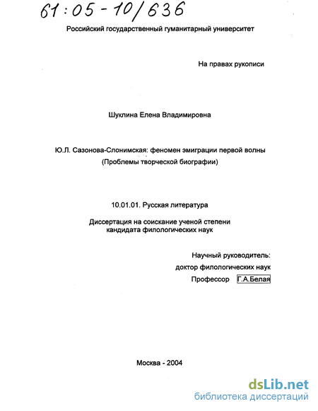 В диссертации реконструируется целостная позиция Сазоновой-критика, которая, в процессе рассмотрения, оказывается не только своеобразной и уникальной для эмигрантской среды, но и представляющей инвариант альтернативной критики во взгляде на советскую литературу.
