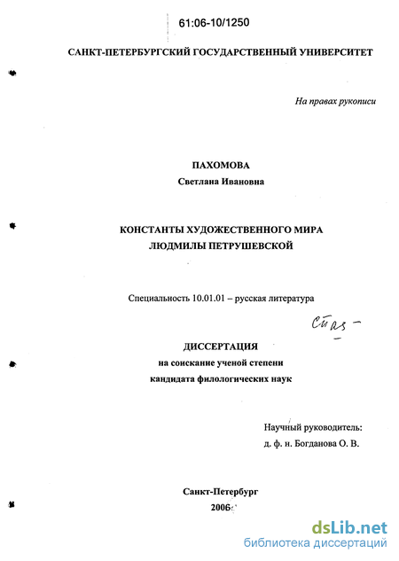 монографии О. Богдановой . Однако в обоих случаях рамки рассмотрения дискурса Петрушевскои жестко ограничены форматом одной главы, что и не позволило развернуть подробный детальный анализ, отсюда преобладание суждений и выводов общего, итогового характера.