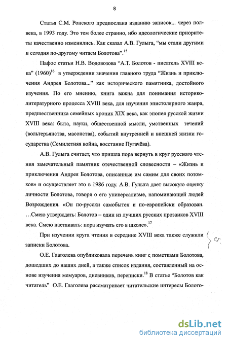 Статья СМ. Ронского предпослана изданию записок... через полвека, в 1993 году. Это тем более странно, ибо идеологические приоритеты качественно изменились. Как сказал А.В. Гулыга, "мы стали другими и сегодня по-другому читаем Болотова".15
