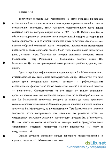 Творческое наследие В.В. Маяковского не было обойдено вниманием исследователей ни в один из исторических периодов развития нашей страны и отечественной филологии. Титул «лучшего, талантливейшего поэта нашей советской эпохи», которым одарил поэта в 1935 году И. Сталин, как будто обеспечил творческому наследию поэта непрестанный интерес со стороны не только филологов, но и со стороны широкого круга читателей. Академические издания собраний сочинений поэта, монографии, исследования методически появляются в эпоху советской власти. Мало того, именем поэта называются улицы, станции метро. Триумфальная площадь становится площадью имени Маяковского, Театр Революции — Московским театром имени Вл. Маяковского. Цитаты из произведений поэта украшают учебники, здания, речь людей.