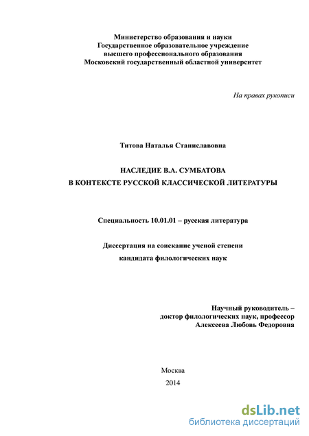 Актуальность избранной темы диссертации определяется масштабом личности, значительностью поэтического творчества В.А. Сумбатова, малой степенью изученности его наследия, той исключительной ролью, какую играют в его произведениях традиции русской классической литературы.