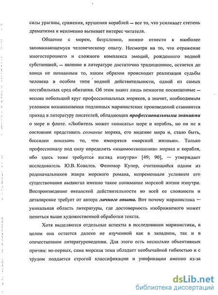 В непосредственном изучении русской и зарубежной литературной маринистики мы опирались на фундаментальные труды В.П. Вильчинского, В.А. Михельсона, Д.М. Урнова, Т.Г. Струковой, Ю.В. Ковалева.