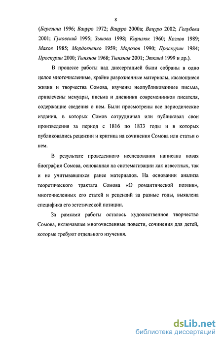 8 (Березина 1996; Вацуро 1972; Вацуро 2000а; Вацуро 2002; Голубева 2001; Гуковский 1995; Зыкова 1998; Кирилюк 1960; Козлов 1989; Махов 1985; Мордовченко 1959; Морозов 1990; Проскурин 1984; Проскурин 2000; Тынянов 1968; Тынянов 2001; Эткинд 1999 и др.).