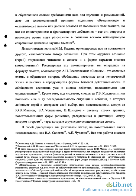 В своей диссертации мы учитываем взгляд на повествование таких исследователей, как В.А. Сапогов28, А.П. Чудаков29. Все эти работы оказали