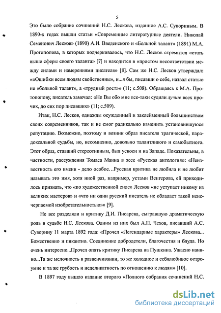 Это было собрание сочинений Н.С. Лескова, изданное А.С. Сувориным. В 1890-х годах вышли статьи «Современные литературные деятели. Николай Семенович Лесков» (1890) А.И. Введенского и «Больной талант» (1891) М.А. Протопопова, в которых подчеркивалось, что Н.С. Лесков стремится «стать выше сферы своего таланта» [7] и находится в «простом несоответствии между силами и намерениями писателя» [8]. Сам же Н.С. Лесков утверждал: ««Ошибки всем людям свойственны», и...я бы, писавши о себе, назвал статью не «больной талант», а «трудный рост»» (И; с.508). Обращаясь к М.А. Протопопову, писатель замечал: «Но Вы обо мне все-таки судили лучше всех прочих, до сих пор писавших» (11; с.509).