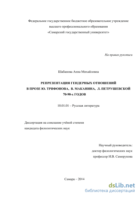 3.2. Литературная эмансипация женщины. «Отдушина», или патриархальный извод 70-х годов 109