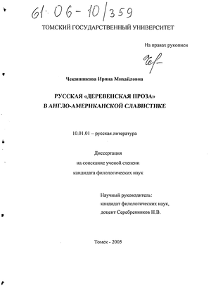 - Восприятие «деревенской прозы» англо-американской славистикой