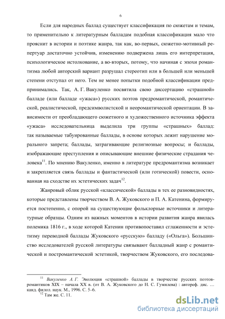 Степень разработанности темы исследования. Хотя многие исследователи баллады романтического и постромантического периода высказывали интересные замечания относительно «ранней» русской баллады, как правило, историками литературы недооценивается путь развития жанра, пройденный им от «Неверности» (1781) М. Н. Муравьева до баллад В. А. Жуковского.