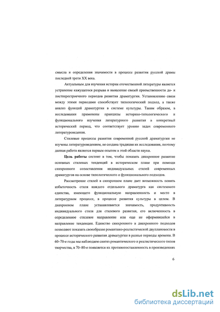 В данном исследовании изложен анализ процесса «качественного перехода» в развитии стилей русской драматургии, когда происшедшие в общественной жизни и общественном сознании изменения оказались в явном противоречии с традиционной идеологической установкой понимания задач драматургии и театра в системе культуры. Была осознана и воспринята как проявление прогресса в развитии драмы художественная ценность индивидуальных стилей А. Арбузова, А. Володина, В. Розова, М. Рощина и более молодых - А. Вампилова, Л. Петрушевской, Э. Радзинского и других.