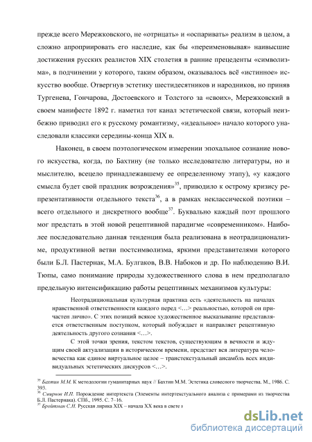 современных авторов. На этом основании случаи литературной традиции по причине своей неисчислимости не выделялись в отдельные главы и параграфы, а привлекались в качестве историко-литературного контекста.